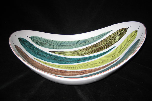 I still collect, but it is getting harder to find good original pieces from the hand painted range. I have a collection of furniture, studio pieces, printed ware, fabric and books by Stig Lindberg but my first love is still the faience pieces. My favourite pieces are the collection of covered gourd bowls as they are such tactile and pleasing shapes. My overall favourite piece, and the one I would grab if the house was on fire, is the large Spektrum Leaf gourd, which I think is the epitome of design form and colour. I was speechless when I first saw one of these in the V&A collection and never thought I would find another, or get the chance to have one of my own. It takes pride of place in my collection and is the one piece I could never imagine selling.