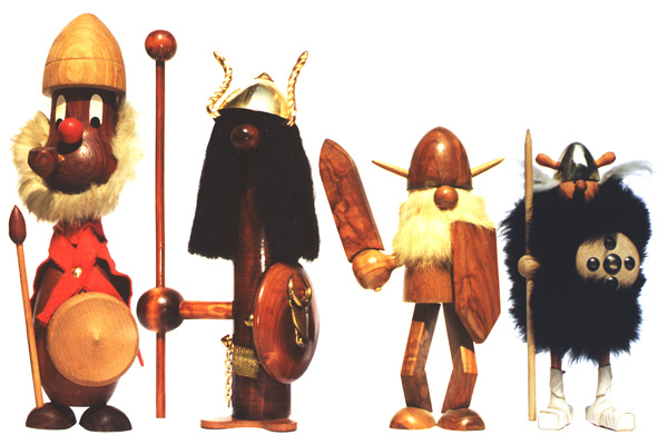 Noggins are handmade Scandinavian tourist souvenirs of Viking figures with wooden bodies and furry beards. They are warlike and cute, fluffy but ready for a fight.