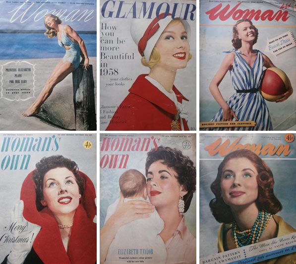 I bought a stack of French magazines from the early 1950s at a car boot sale. The illustrations really appealed to me; unfortunately, not being able to speak French, I was unable to read them properly and so vowed to keep my eyes open for some English ones. Luckily, about six months later I found a man on a car boot sale selling his late mother’s collection of Woman’s Own and Woman magazines from the 1950s. I picked up one, flicked through it and was immediately sold. Tentatively, I asked the price and was staggered when he said I could have the lot for £10. He mentioned that he had even more at home, so a few weeks later I went to visit. He did have a few more: close to one hundred more! All of the magazines had been collected by his mother sporadically over four decades. I bought all of them! Since then, the collection has been supplemented with presents and the odd find in antiques shops, markets and stalls.