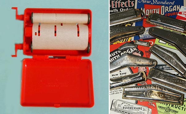 Other favourites are a Babe's Musical Bat miniature harmonica that was produced for games three and four of the 1927 pennant series between the New York Yankees and the Pittsburg Pirates. It was sold as a souvenir to fans at the Yankee Stadium. It's in the shape of a baseball bat. It is 4" long and plays ten notes. I also have numerous boomerang shaped harmonicas that were made for the Australian market and sold through Albert's Music stores.
