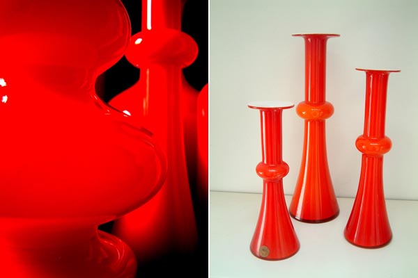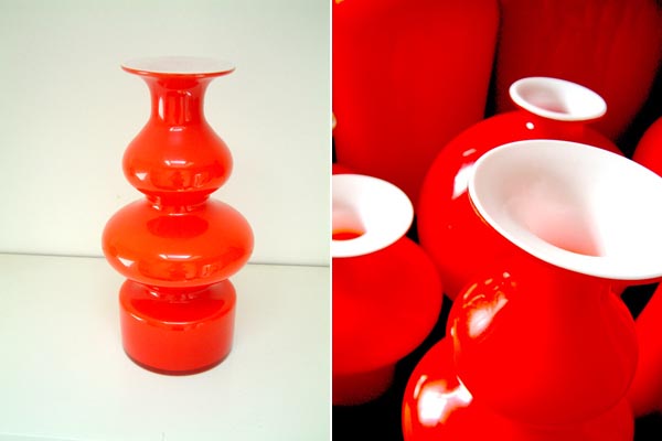 I bought my first piece from eBay. I’m addicted to trawling for incorrectly listed items in the hope that I’ll get them for a steal. I knew a bit about Holmegaard glass at this point and this piece was listed without any of the key words that collectors might search for in its listing title. I was convinced that I would be getting the piece for a low price. This wasn’t the case and the bids just kept going up and up, but I was hooked by that point and had to have the vase, so overpaid, and won it. I’ve collected carnaby vases and other cased Holmegaard glass ever since.