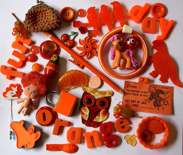 My collections seem to have a life of their own. They evolve and change depending on my creative moods and interests. I am attracted to things that have the memories of another life attached. I am crazy about colour theory, and have a deep seated urge to sort things. One day I was trying out my new camera and I decided to gather together piles of my collected "Stuff" into colour coded arrangements. This became a weekly feature on my blog, and a friend would suggest a colour theme for the next one. It was fun to search my house for coloured stuff to fit the theme. Later I printed the images and made greeting cards that I sell in my Etsy shop.
