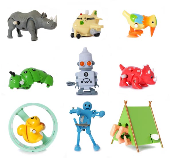 The initial premise for starting this collection was to reconnect with our former selves as children and have some fun whilst learning. The wind up toys are great for illustrating how many different (and entertaining) mechanical outputs can be derived from the same starting point of an initial unwinding coil spring mechanism. They are incredibly well thought out little product designs that have to balance affordability with ease of manufacture and of course compete with each other for attention and entertainment value. Essentially they are 'old school' mechanical designs wrapped up in a modern plastic package. It’s also an opportunity to show how even the simplest looking products are far from simple when you start to weigh up all their conflicting design issues. Creativity and ingenuity are close bed-fellows in the world of product design.
