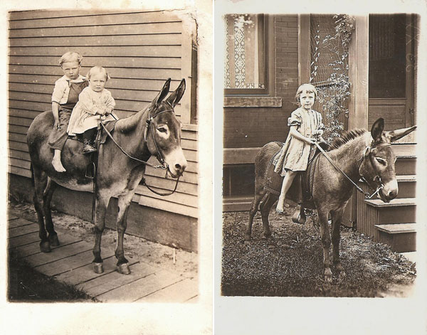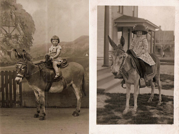 Amazing! I collect old photos too, and usually find "boy on pony" photos. Does she find boys on donkeys? Or are the donkeys strictly for girls?