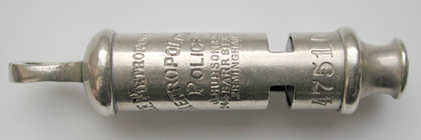 It is the social history that I find interesting. A single police whistle made c.1890s could have had a working life right up to the time whistles were superseded by the police radio, sometime in the 60s, but the whistle continued to be worn as part of an officers uniform for many years after. Nowadays whistles are usually only worn on a ceremonial occasion when an officer is wearing his uniform tunic, such as a Royal Wedding, or State funeral perhaps. If a whistle could talk though, just think what it may have seen during its service of 70 years or so.