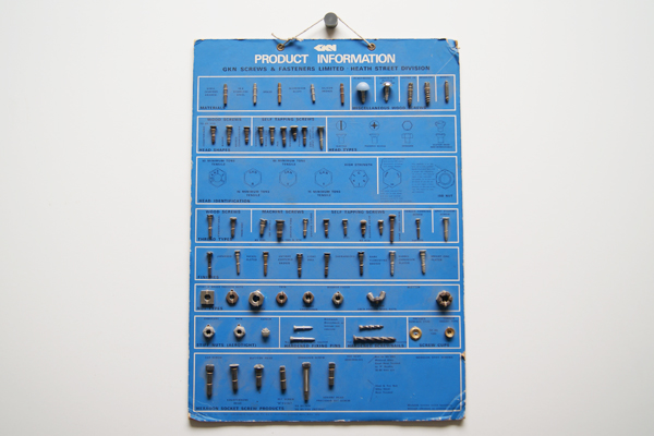 Dating back to the 50s, 60s and 70s these display boards, from my university's workshops, represent a time long gone now; one that has been replaced by the catalogue or online gallery. This touchy feely world of real things, from a long lineage of British manufacturing (after all these companies literally helped kick-start the industrial revolution), seem almost quaint and nostalgic in a world now dominated by CAD, virtual representation and hands off 3D printing.